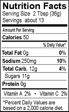 Nutritional Information - Original Sauce
